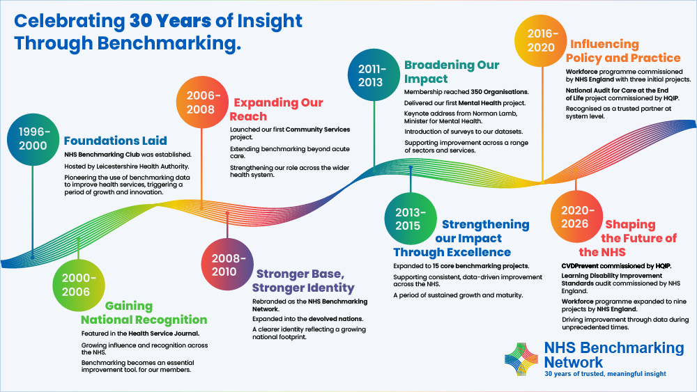 2026 marks a significant milestone for the NHS Benchmarking Network as we celebrate our 30th anniversary. Over the past three decades, the Network has grown into a trusted and collaborative community, supporting the NHS and health and care organisations with robust benchmarking, insight, and shared learning to drive improvement in care, outcomes, and value. Reaching this anniversary is an opportunity to reflect on what has been achieved together and to look ahead with confidence and ambition.